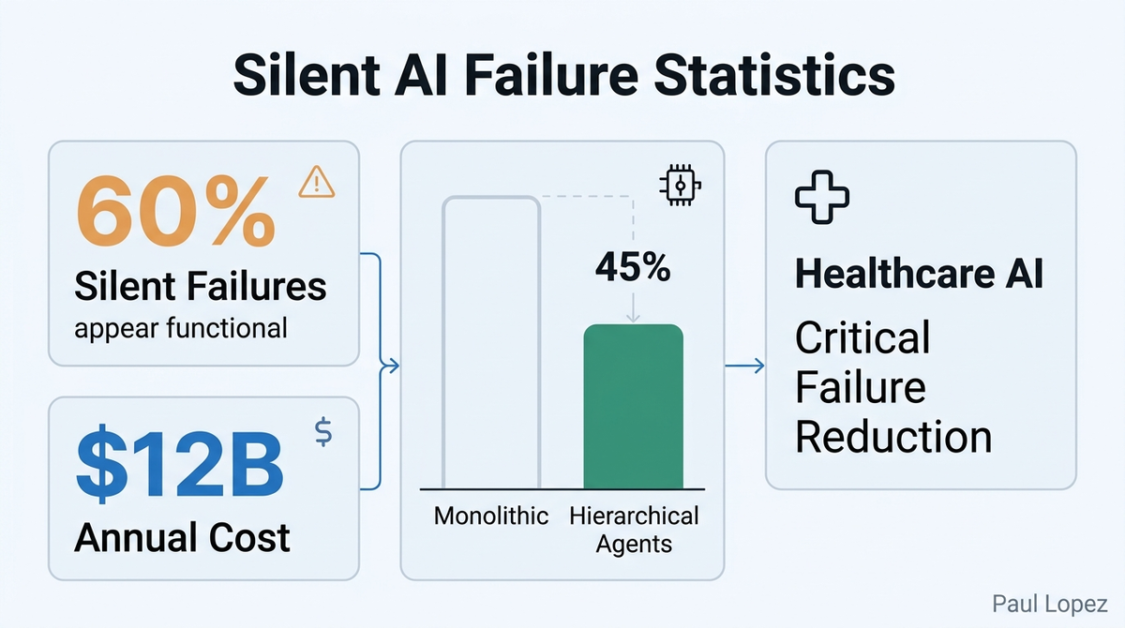 Here’s what keeps enterprise architects awake at night: 60% of AI system failures in production are “silent failures,” systems that appear functional while producing subtly incorrect outputs [4]. It’s like having a GPS that confidently directs you to the wrong destination while displaying perfect signal strength.